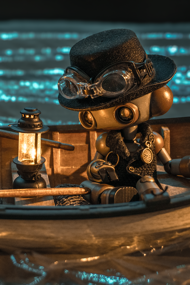 Sculpted in a brand new “Tall” body size (17.5 cm), Steampunk Bucket is taller than the original size, has the same size head and larger hands and feet. He also has added hip joints!