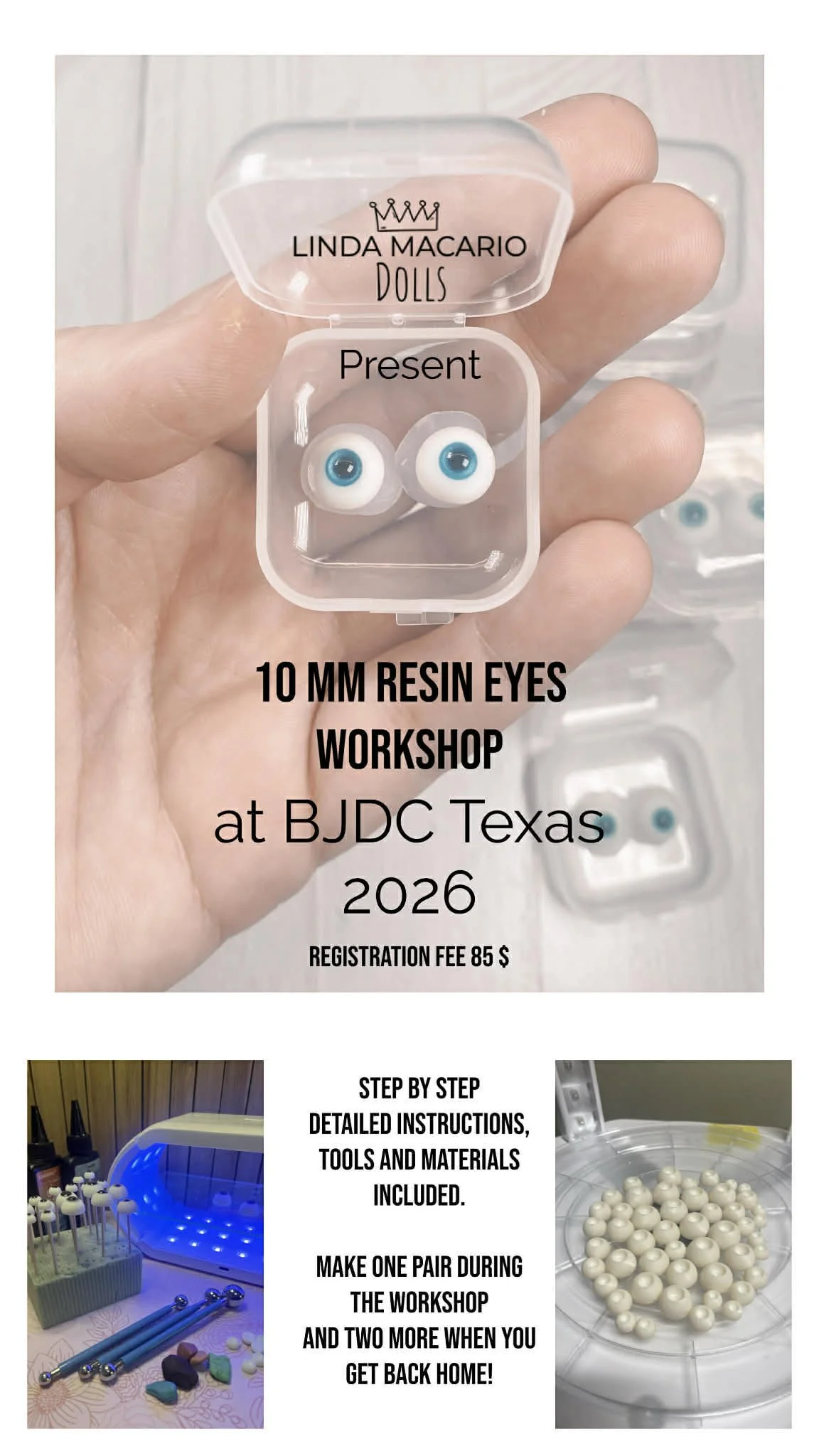 Step into the workshop and discover how the perfect pair of eyes can transform the entire character of your BJD. In this hands-on session, Gina Rolo will explore how subtle differences in color, size, depth, and shine can completely change your doll’s expression and personality. You’ll learn what factors seasoned collectors and artisans consider when selecting the ideal pair—from resin tone and face sculpt to lighting, mood, and overall aesthetic.