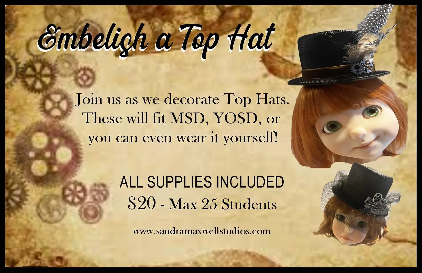 Join Sandra Maxwell of Sandra Maxwell Studios as she guides you through the art of crafting beautifully detailed miniature top hats. With precision, creativity, and a touch of vintage ingenuity, you’ll design a hat worthy of an airship captain, daring explorer, or brilliant inventor.